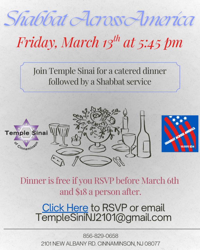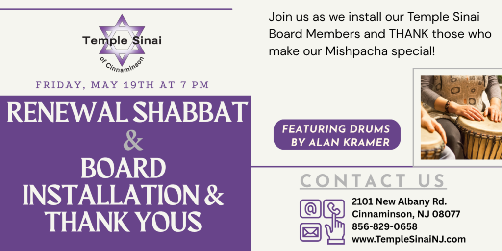 Temple Sinai is a small, warm, and welcoming congregation located in Cinnaminson, (Burlington County) New Jersey with congregants from all over New Jersey, Pennsylvania, Maryland, and even North Carolina! We are part of the Conservative tradition, with our own distinct style of egalitarian, progressive, and participatory services. Rabbi/Cantor Colman Reaboi and the Temple Sinai Mishpacha welcome all families to join us for weekly services, Chaggim (holiday) celebrations, adult education, social action, social events, Hebrew School, and being a part of a friendly community.