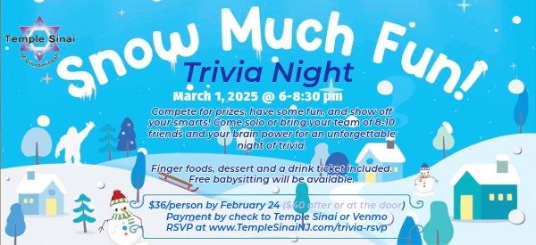 In addition to Sisterhood, Men’s Club, USY, and Kadima, we offer some other clubs you might be interested in joining. They are listed below. Gift of Israel Temple Sinai participates in a cooperative savings program, co-funded by member families, synagogues and the Jewish Federation (through AJA contributions). It helps strengthen Jewish identity by enabling post-Confirmation Religious School students to visit Israel on sponsored trips. The Federation and Synagogue will each give a stipend of up to $150 for seven years ($1,050) towards an extended post-confirmation trip to Israel with groups such as USY, Ramah, and others. Each family who wants to participate also contributes by creating a savings account at Bank Hapoalim. Contributions usually begin when your child is in 3rd grade. If your child decides not to continue with Confirmation, your investment will be returned. This is an excellent way to set aside funds so your child can visit Israel with other teens. Contact Marcia Libster at 856 866-8172 for more information and to sign-up. Families With Young Children Approximately every other month, parents with pre-schoolers (ages five and under) find companionship and conversation over Sunday breakfast while their children enjoy age-appropriate Jewish activities and crafts. These breakfasts are…